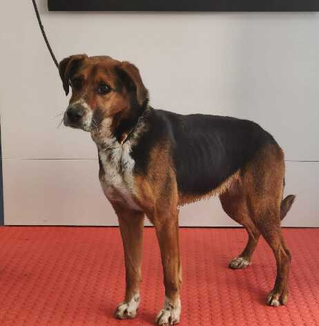 Beagle - Bóxer Nico , necesita conocer a la gente antes de mostrar afecto , probablemente por el tipo de vida que ha llevado