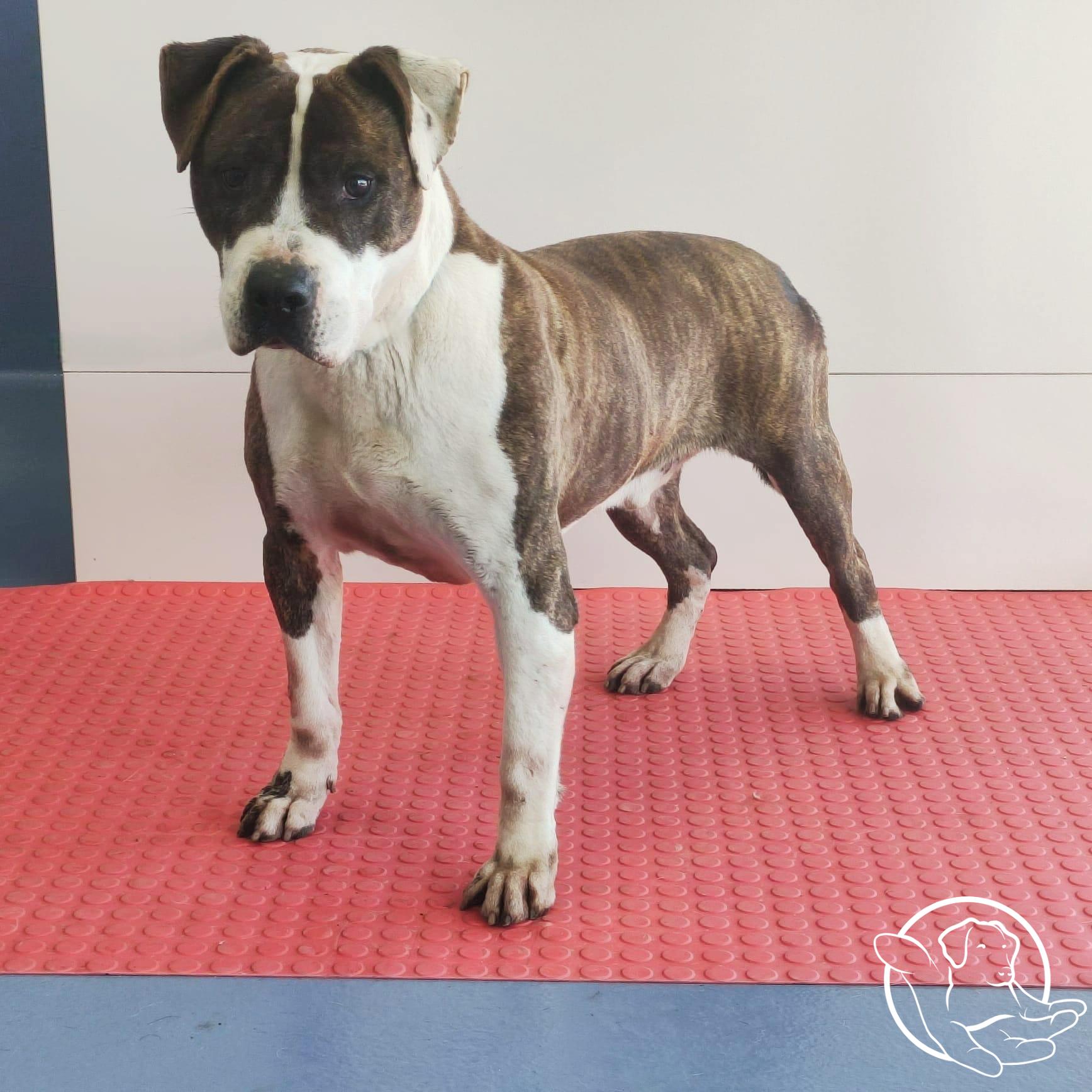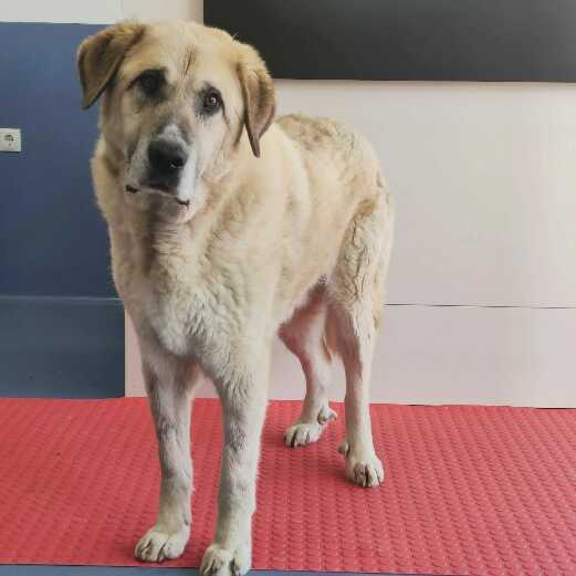 Cruce de mastin enorme, mediana edad, un sol con los humanos, muy tranquilo. Puede vivir con hembras. Busca un nuevo hogar